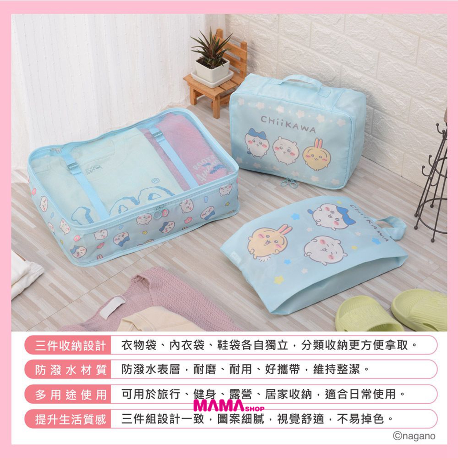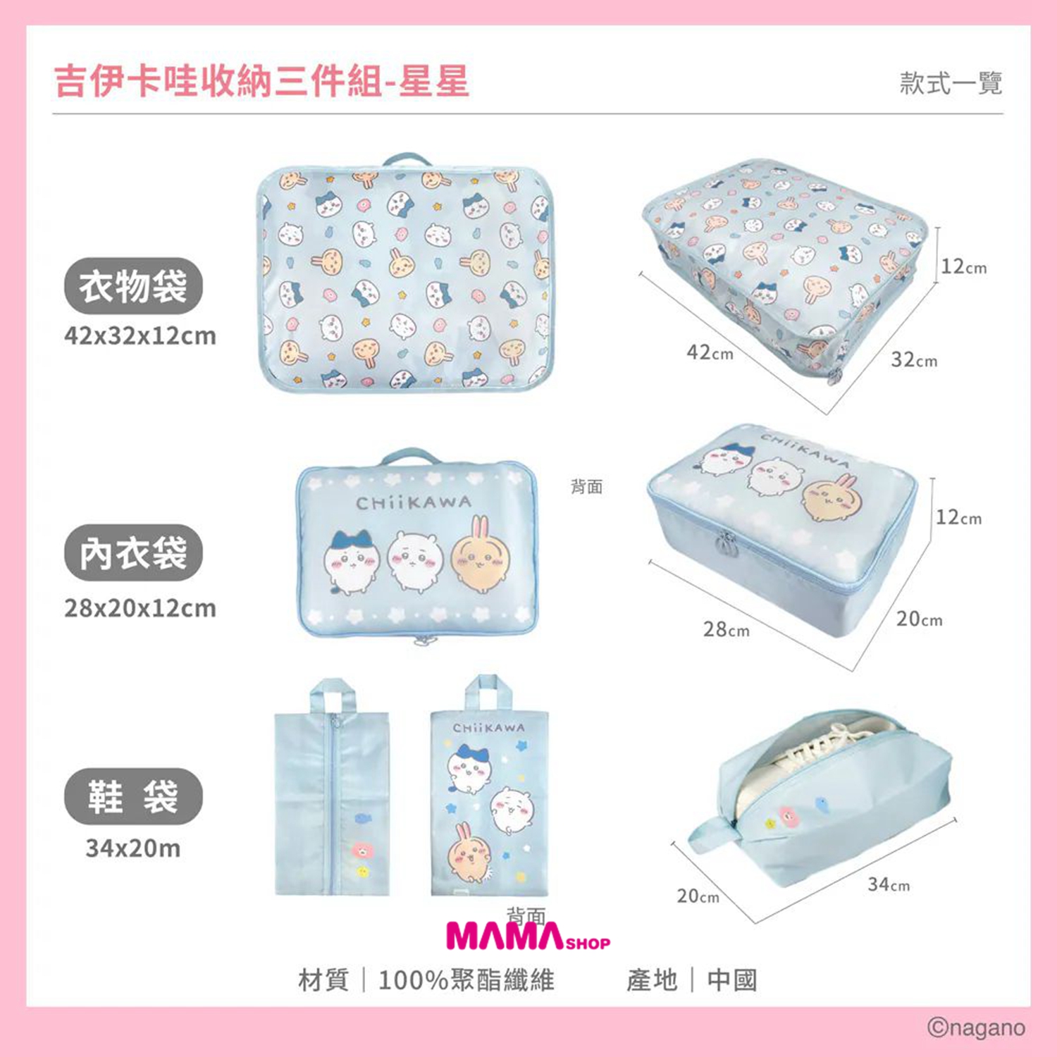 台灣直送 Chiikawa吉伊卡哇收納袋三件組