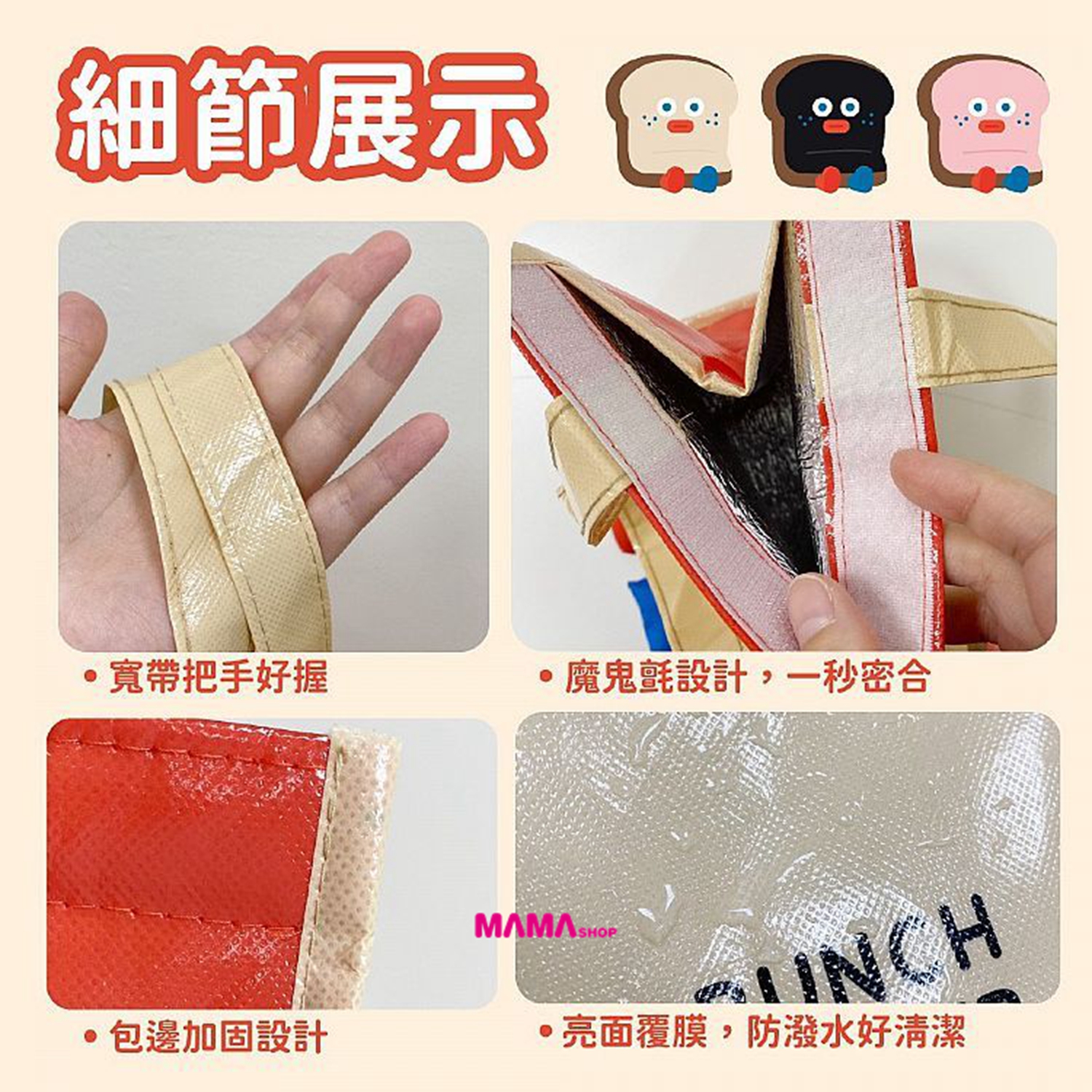 12月到貨 2款選擇 ●大開口設計 ●寬底支撐不易傾倒 ●寬帶把手好握、不勒手 ●立體造型腳,可愛加倍 材質:聚酯纖維、鋁箔 尺寸:約220*200*140mm 網站自助下單: 1. 進入商舖,挑選貨品然後按購買,加到購物車後按下一步。 2. 選擇送貨方法後再填寫送貨/取貨資料 3. 選擇付款方法後再付款,然後就會收到訂單確認通知 4. 顧客會收到電郵通知,請於2日內付款,愈時訂單作廢 5. 付款後,請在訂單內上載付款存據,以便確認 選擇付款方法: 過數後請Send入數紙/請提供cap圖,請在訂單內上載付款存據,以便確認 取貨安排: 1). 選擇門市取貨的客人:確認訂單後,貨品到達門市後會以WhatsApp訊息通知取貨 2). 選擇順便快遞的客人(順豐到付): 確認訂單後,如有現貨約2-3個工作天內寄出 3). 選擇平郵的客人: 確認訂單後,如有現貨約2-3個工作天內寄出 如有任何查詢,請點擊右下角,揀選聯絡方法,與店長即時聯絡,歡迎在線查詢