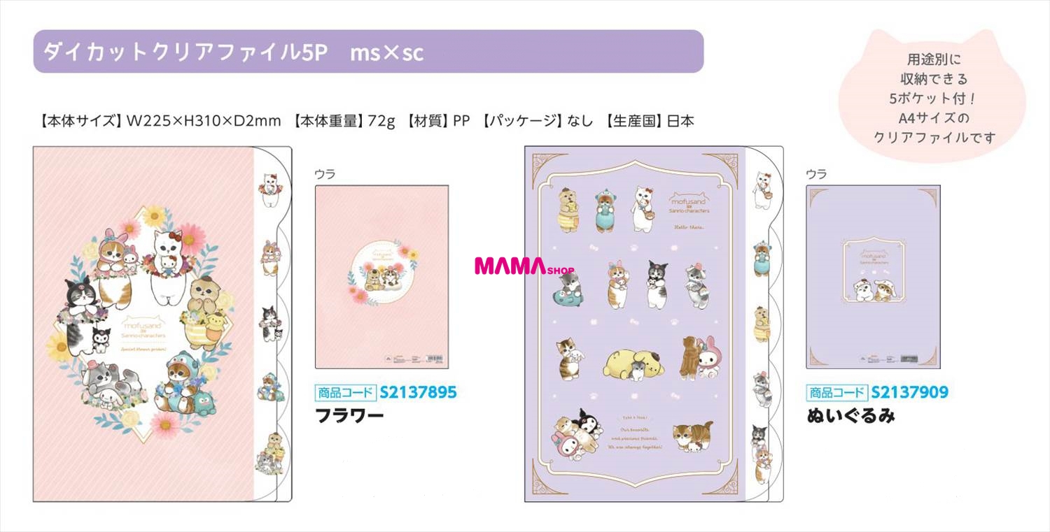 日本直送 Mofusand X SANRIO CHARACTERS 文具---5層File