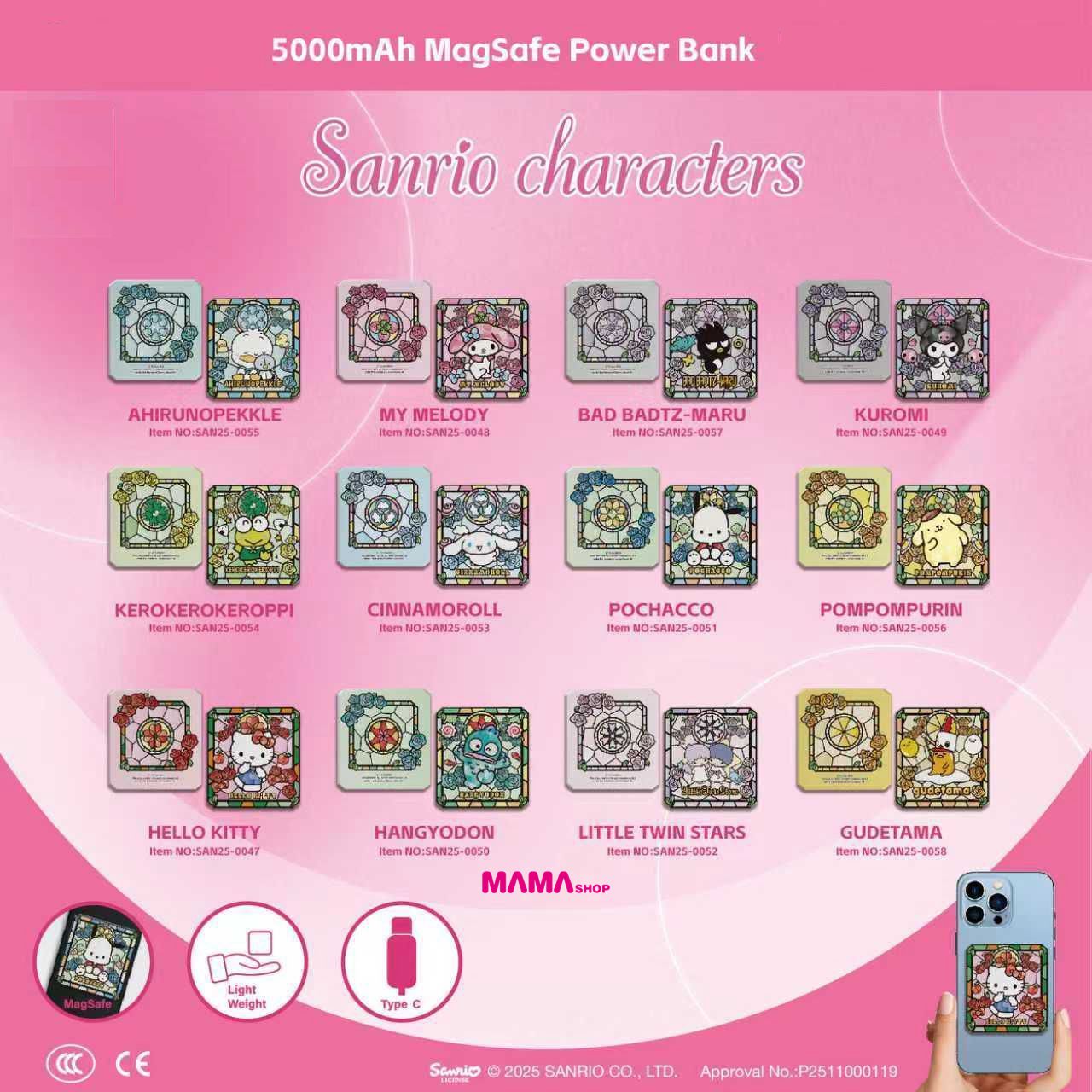 2-3星期到貨 12款選擇 🔸AP鴨 🔸My Melody 🔸XO 🔸Kuromi 🔸Keroppi 🔸Cinnamoroll 🔸Pochacco 🔸Pompompurin 🔸Hello Kitty 🔸水怪 🔸Little Twin Stars 🔸蛋黃哥 🔹體積小巧輕盈,方便攜帶,容易收納! 🔹5000mAh電池容量,有15W磁吸無線充電的功能,方便外出應急,為手機充電! 🔹Type-C輸出/輸入介面 🔹尺寸: 67.3 x 62 x 14.5 mm 🔹重量: 105g 原廠六個月保養 網站自助下單: 1. 進入商舖,挑選貨品然後按購買,加到購物車後按下一步。 2. 選擇送貨方法後再填寫送貨/取貨資料 3. 選擇付款方法後再付款,然後就會收到訂單確認通知 4. 顧客會收到電郵通知,請於2日內付款,愈時訂單作廢 5. 付款後,請在訂單內上載付款存據,以便確認 選擇付款方法: 過數後請Send入數紙/請提供cap圖,請在訂單內上載付款存據,以便確認 取貨安排: 1). 選擇門市取貨的客人:確認訂單後,貨品到達門市後會以WhatsApp訊息通知取貨 2). 選擇順便快遞的客人(順豐到付): 確認訂單後,如有現貨約2-3個工作天內寄出 3). 選擇平郵的客人: 確認訂單後,如有現貨約2-3個工作天內寄出 如有任何查詢,請點擊右下角,揀選聯絡方法,與店長即時聯絡,歡迎在線查詢