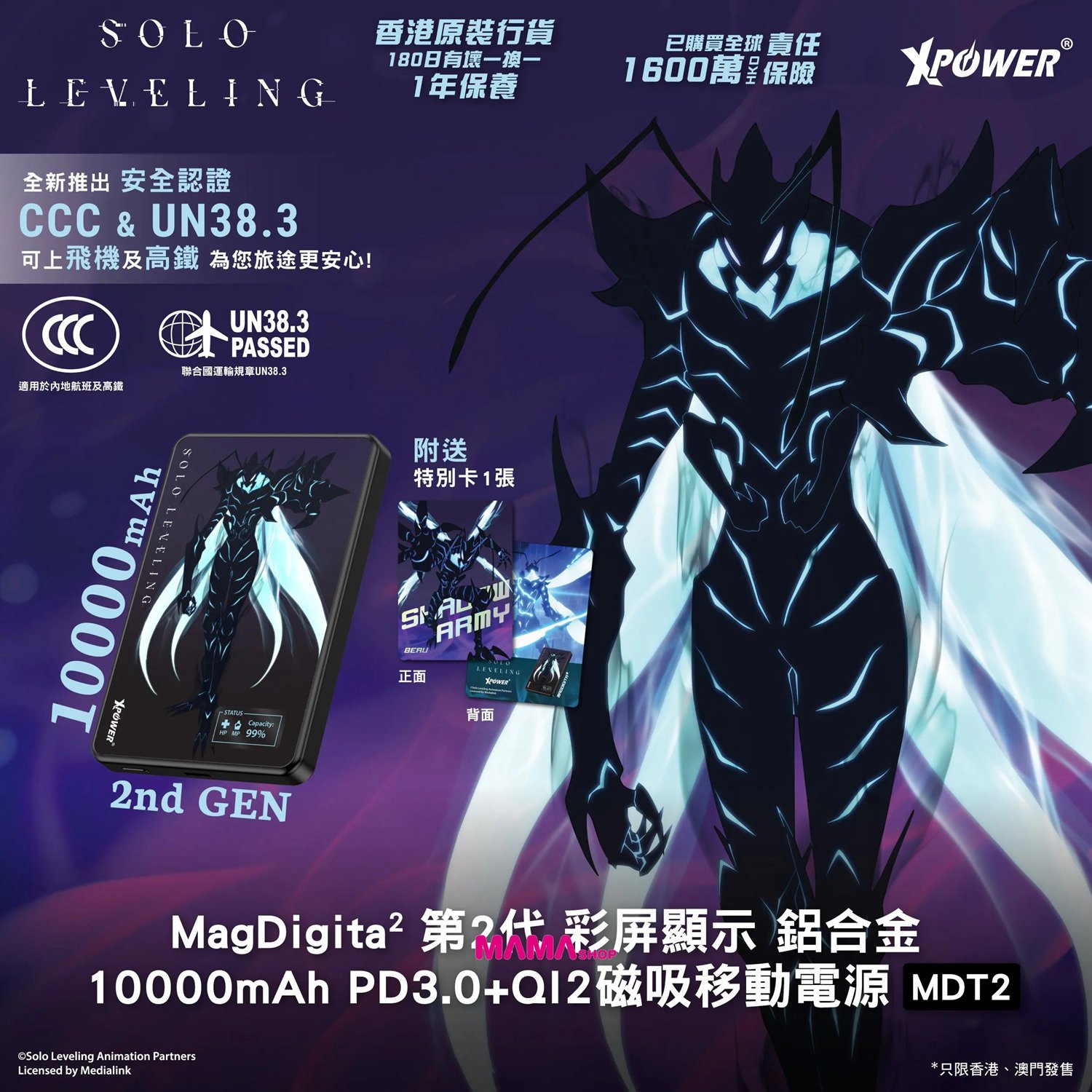 MagDigita2 第2代 Solo Leveling 我獨自升級 蟻王 彩屏顯示 鋁合金 10000mAh PD3.0+QI2 磁吸移動電源 MDT2