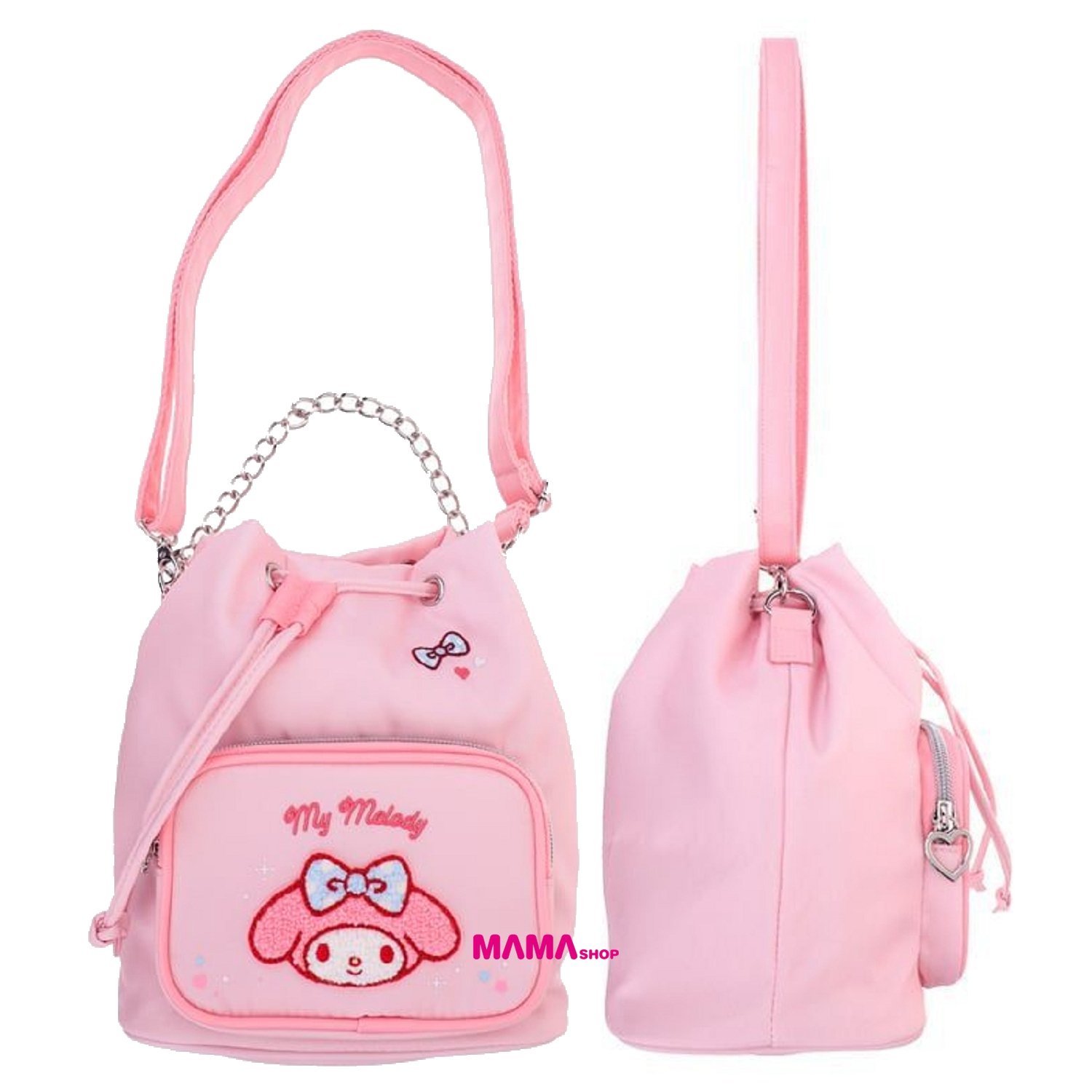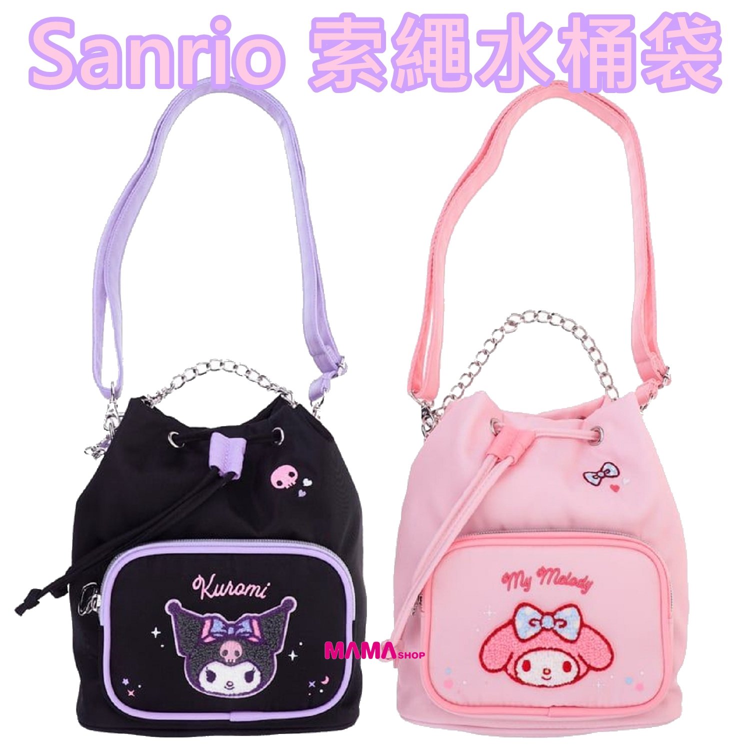 2款選擇 My Melody Kuromi - 前方拉鍊格印有精美刺繡章,可擺放細小物件。 - 內𥚃口袋提供實用收納空間 - 附送可調節、可拆缷肩帶及短銀扣鏈帶,配合不同的身高需要, 鐘意單揹、側揹、斜揹、手挽亦可 - 穿上簡單配搭就可著出自己風格 物料: 聚酯纖維 尺寸: 17.5*20*12cm 網站自助下單: 1. 進入商舖,挑選貨品然後按購買,加到購物車後按下一步。 2. 選擇送貨方法後再填寫送貨/取貨資料 3. 選擇付款方法後再付款,然後就會收到訂單確認通知 4. 顧客會收到電郵通知,請於2日內付款,愈時訂單作廢 5. 付款後,請在訂單內上載付款存據,以便確認 選擇付款方法: 過數後請Send入數紙/請提供cap圖,請在訂單內上載付款存據,以便確認 取貨安排: 1). 選擇門市取貨的客人:確認訂單後,貨品到達門市後會以WhatsApp訊息通知取貨 2). 選擇順便快遞的客人(順豐到付): 確認訂單後,如有現貨約2-3個工作天內寄出 3). 選擇平郵的客人: 確認訂單後,如有現貨約2-3個工作天內寄出 如有任何查詢,請點擊右下角,揀選聯絡方法,與店長即時聯絡,歡迎在線查詢