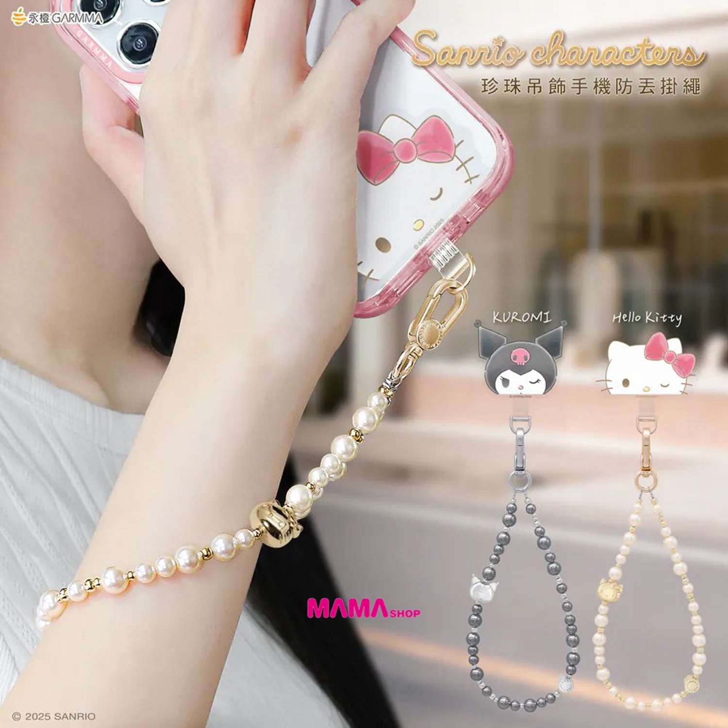 台灣直送Sanrio 珍珠吊飾手機防丟掛繩