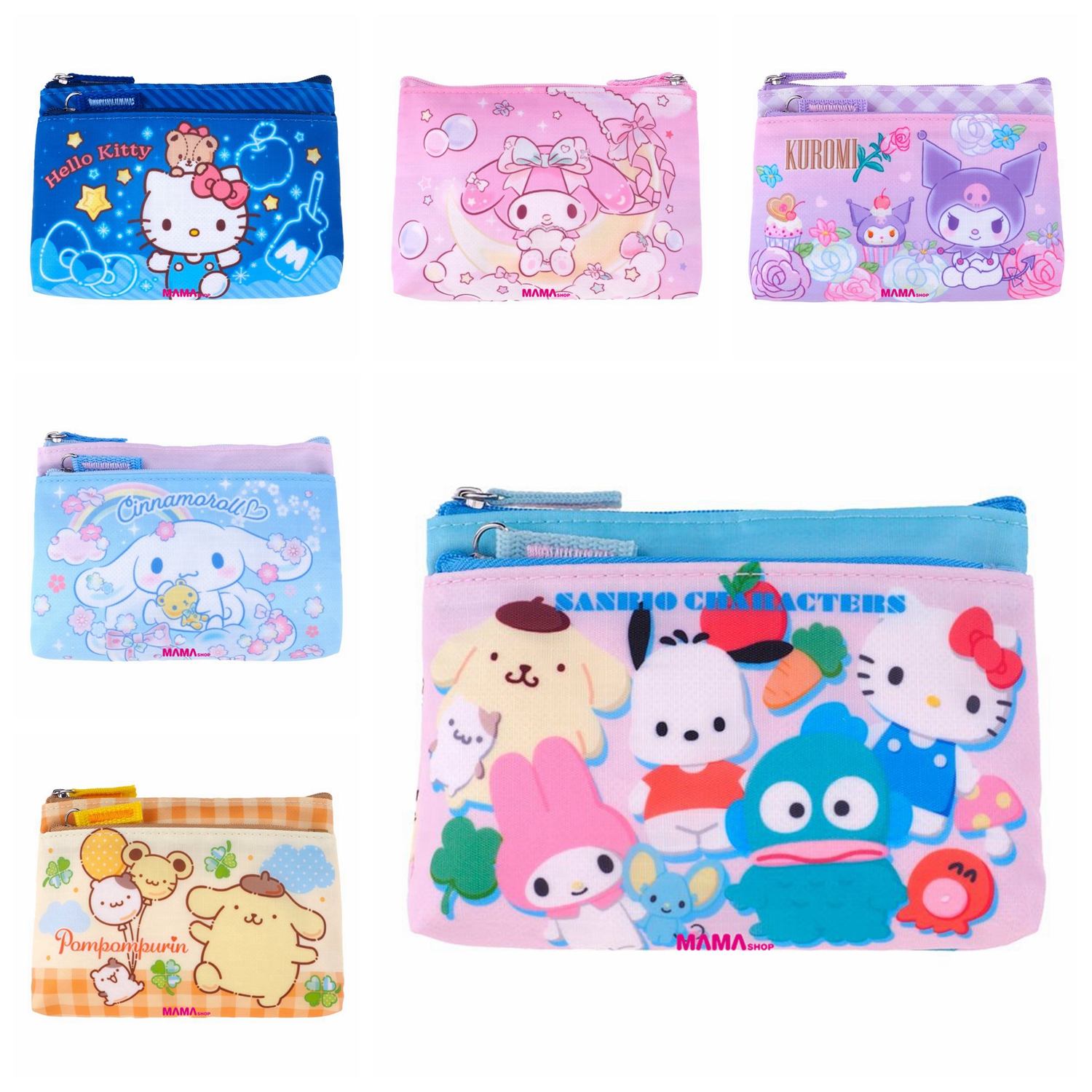 6款選擇 Kuromi My Melody Hello Kitty 玉桂狗 布甸狗 Mix Characters 尺寸: 14.5*10*4.5cm 物料: 人造纖維 推薦大家使用這款Sanrio雙層小袋! 外型細小,輕便易攜,附有兩個拉鍊格, 可以分類擺放零錢、卡、單據或其他小物。 網站自助下單: 1. 進入商舖,挑選貨品然後按購買,加到購物車後按下一步。 2. 選擇送貨方法後再填寫送貨/取貨資料 3. 選擇付款方法後再付款,然後就會收到訂單確認通知 4. 顧客會收到電郵通知,請於2日內付款,愈時訂單作廢 5. 付款後,請在訂單內上載付款存據,以便確認 選擇付款方法: 過數後請Send入數紙/請提供cap圖,請在訂單內上載付款存據,以便確認 取貨安排: 1). 選擇門市取貨的客人:確認訂單後,貨品到達門市後會以WhatsApp訊息通知取貨 2). 選擇順便快遞的客人(順豐到付): 確認訂單後,如有現貨約2-3個工作天內寄出 3). 選擇平郵的客人: 確認訂單後,如有現貨約2-3個工作天內寄出 如有任何查詢,請點擊右下角,揀選聯絡方法,與店長即時聯絡,歡迎在線查詢