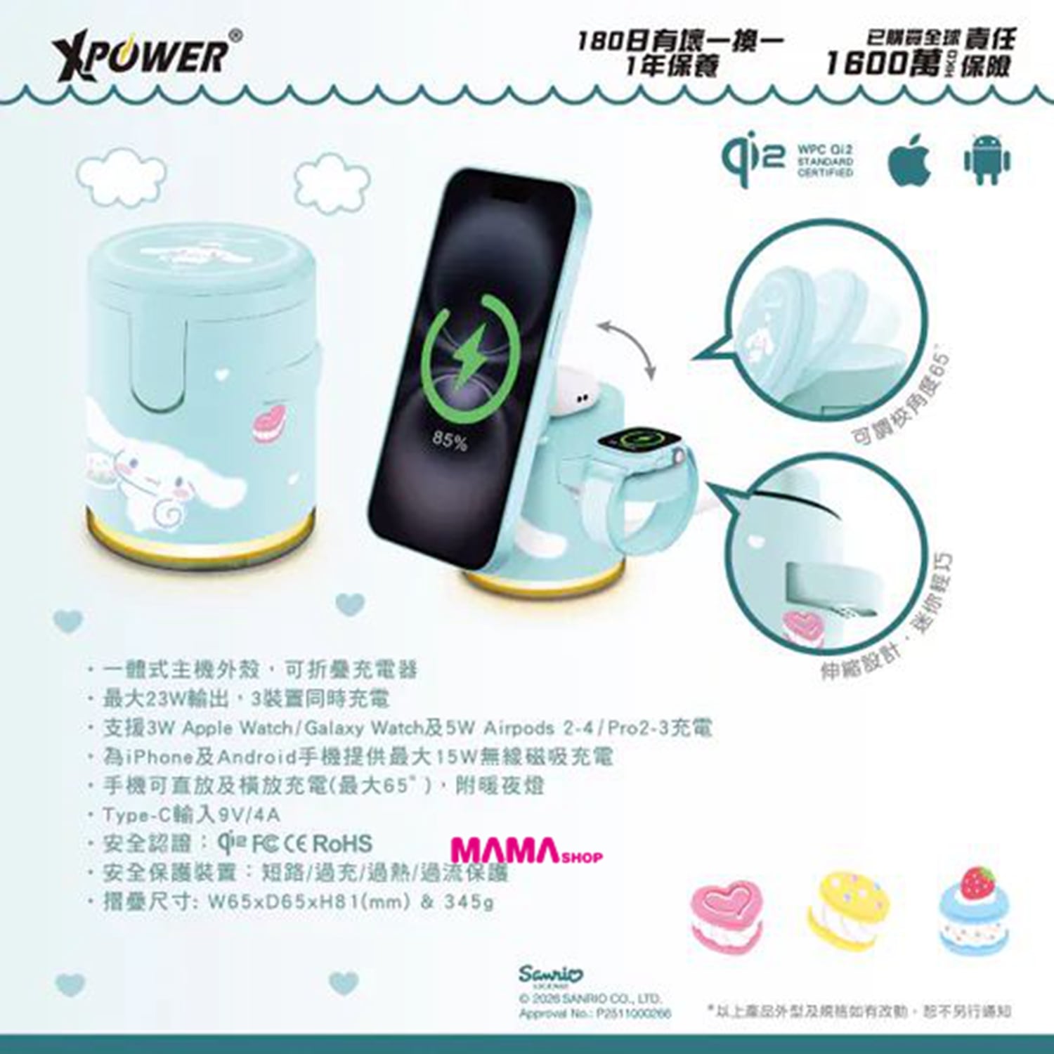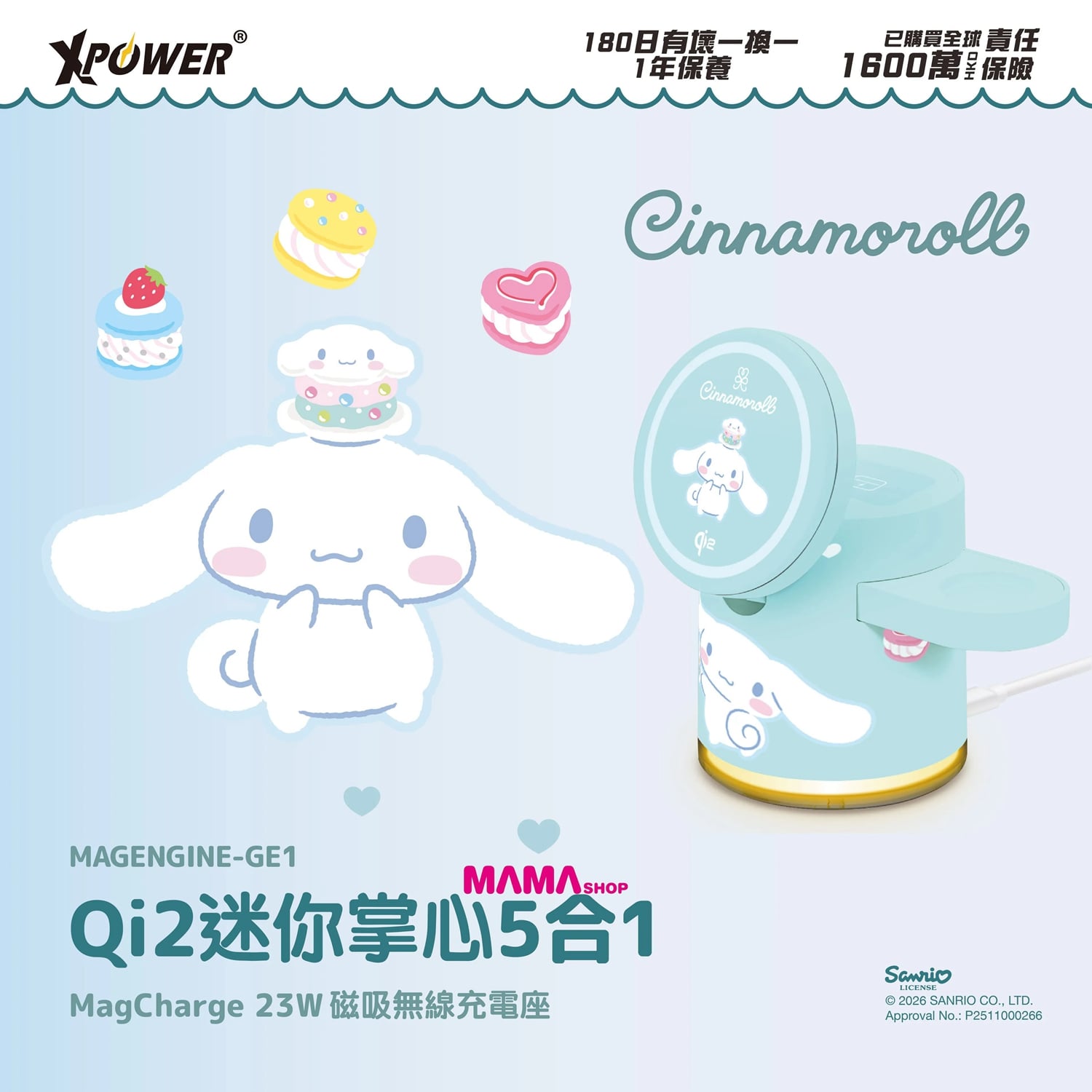 Sanrio Cinnamoroll 玉桂狗 Qi2迷你掌心5合1 MagCharge 15W磁吸無線充電座