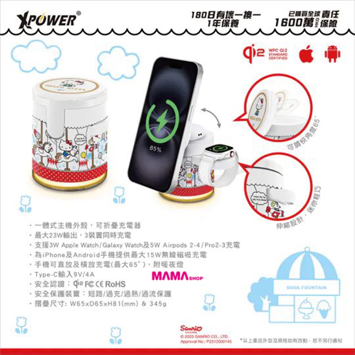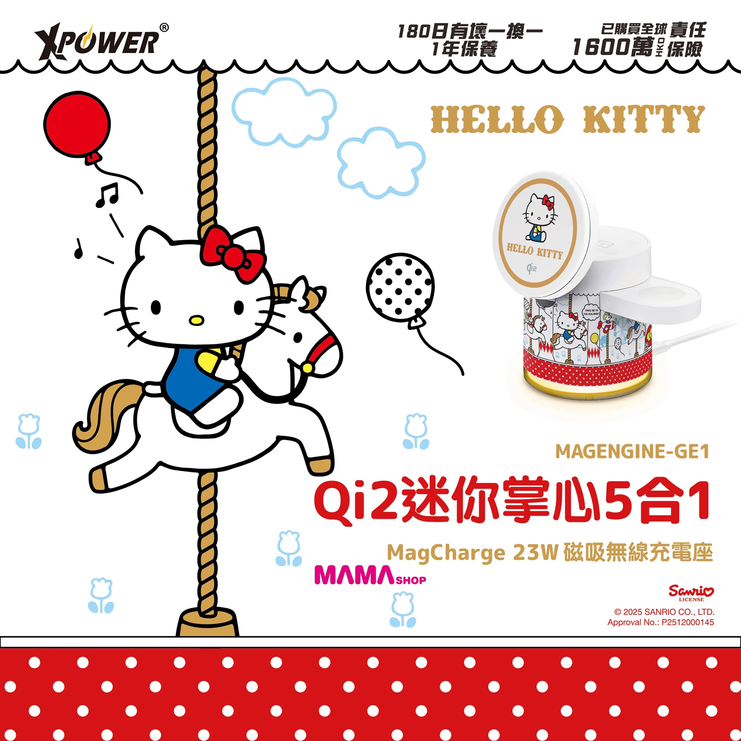 Sanrio Hello Kitty Qi2迷你掌心5合1 MagCharge 15W磁吸無線充電座